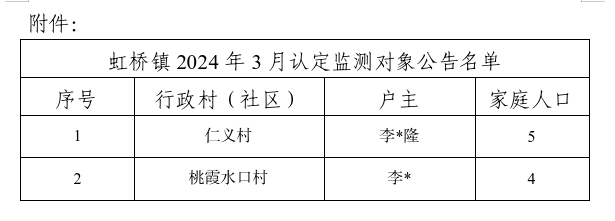 附件:虹桥镇2024年3月认定监测对象公告名单