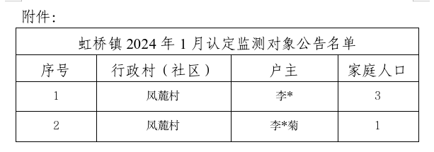 附件:虹桥镇2024年1月认定监测对象公告名单