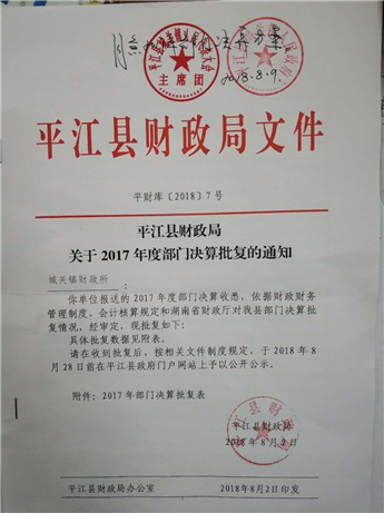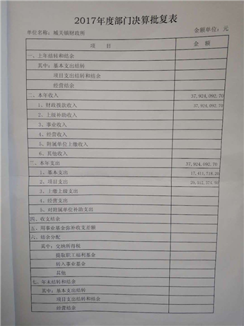 城关镇2017年度部门决算批复公示