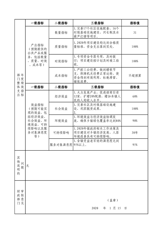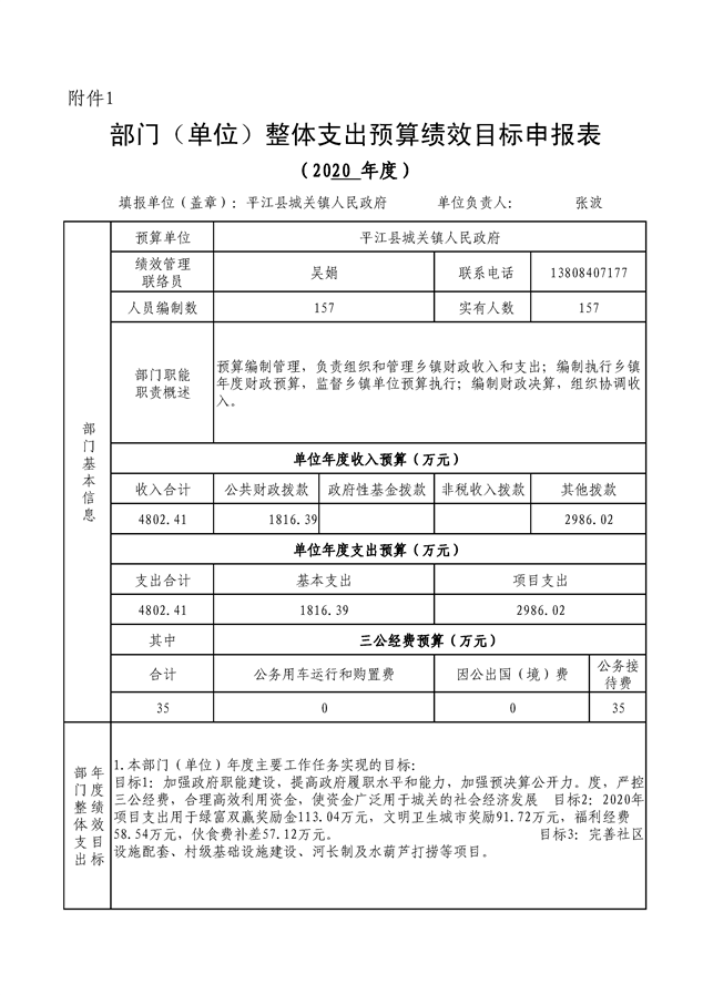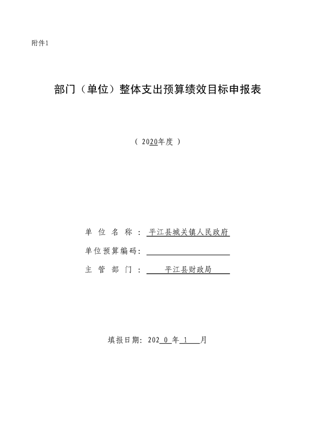 城关镇2020年部门(单位)整体支出预算绩效目标申报表