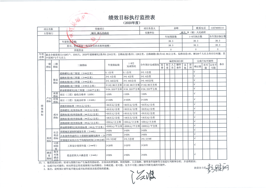 城关镇2020年度统筹整合涉农资金项目库预算绩效监控