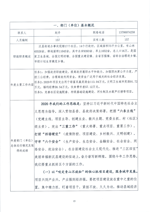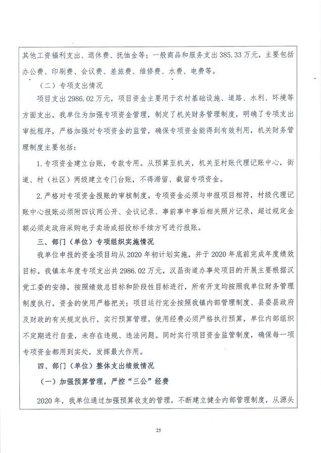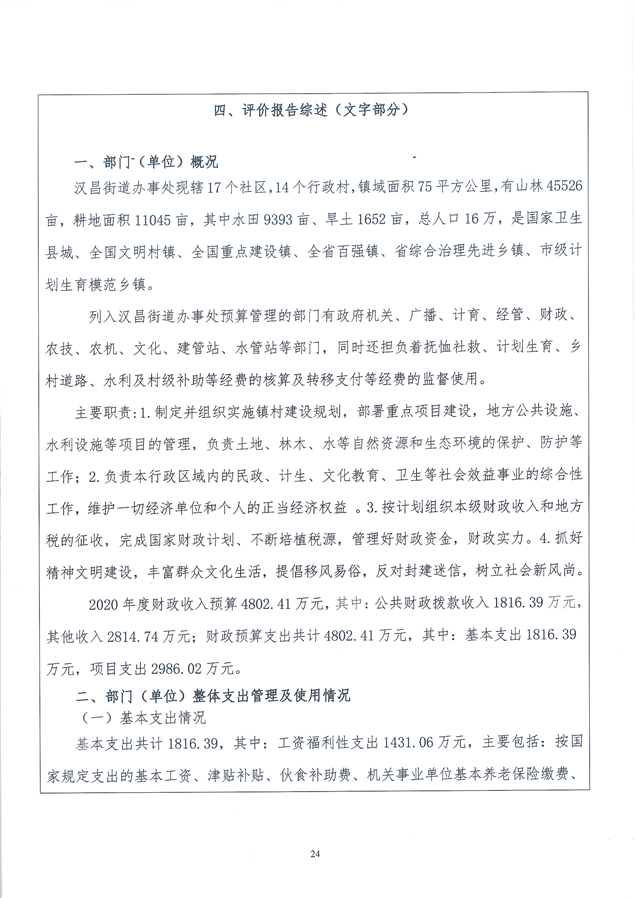 汉昌街道2020年度整体绩效评价自评报告