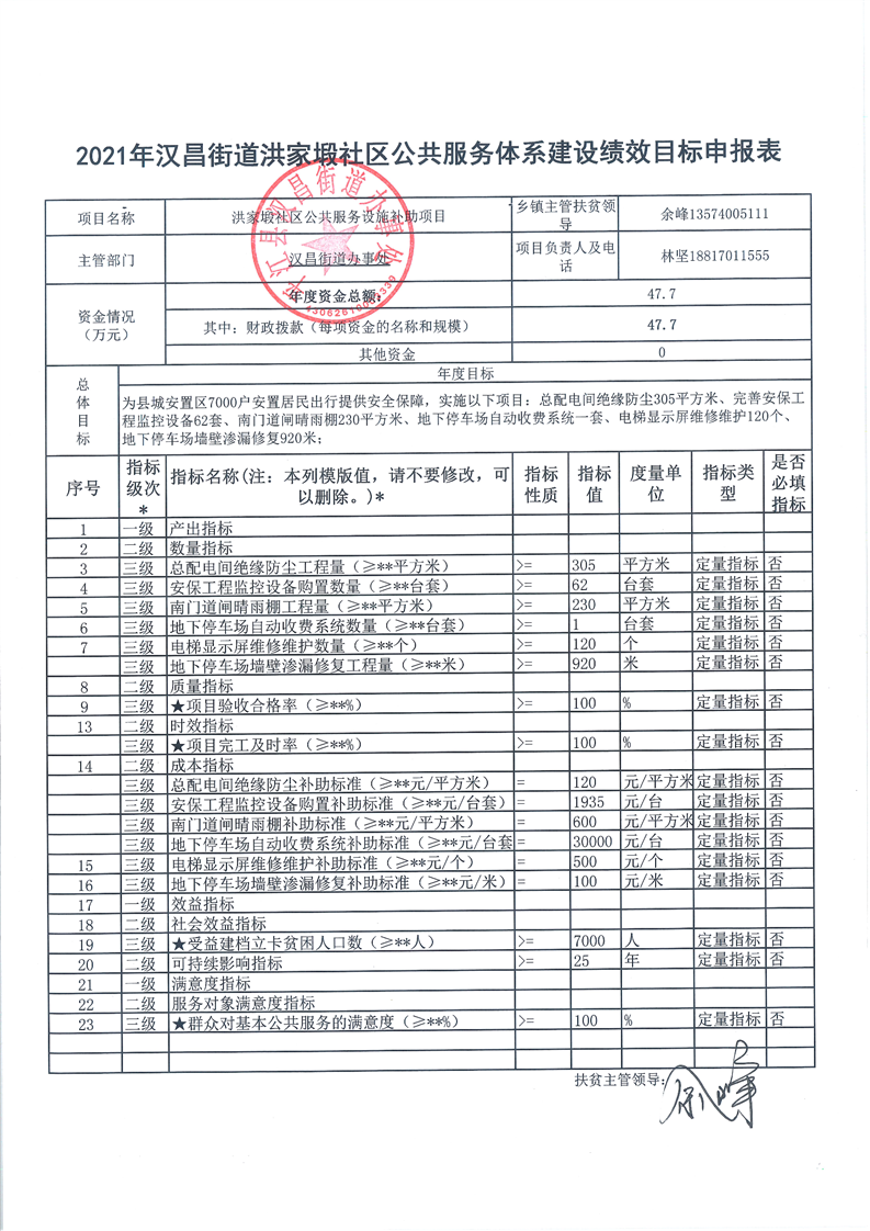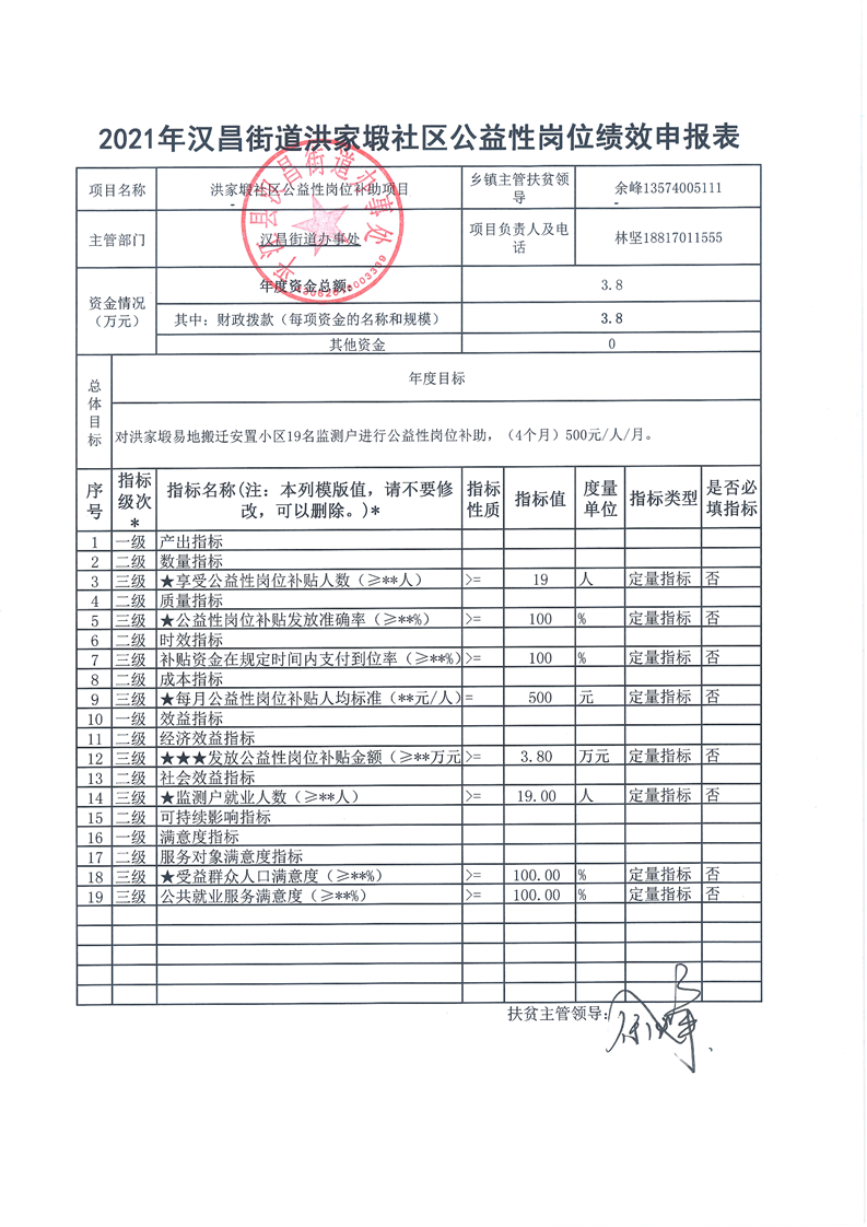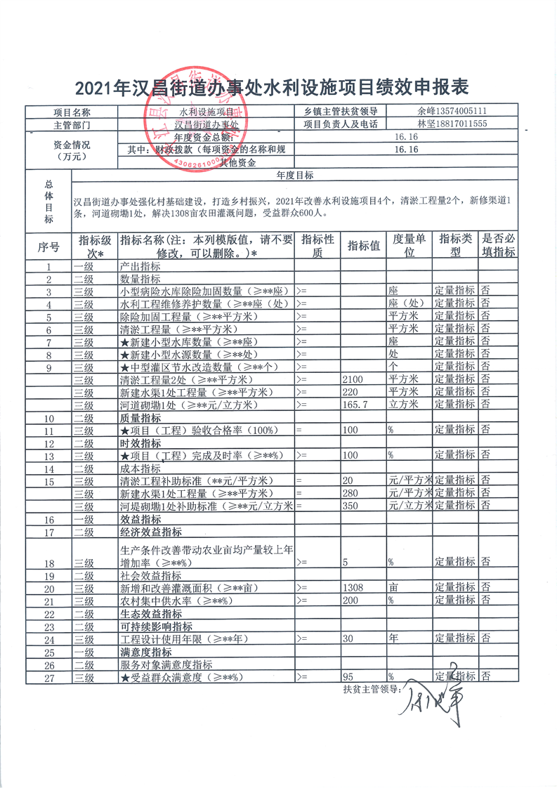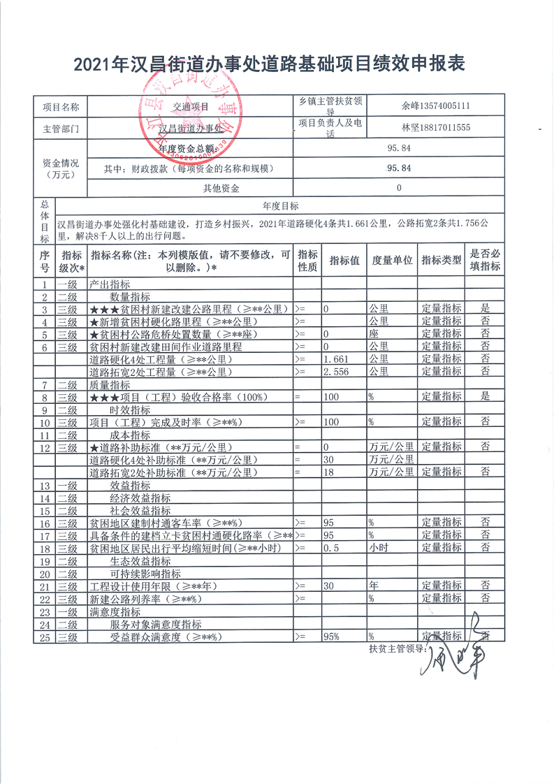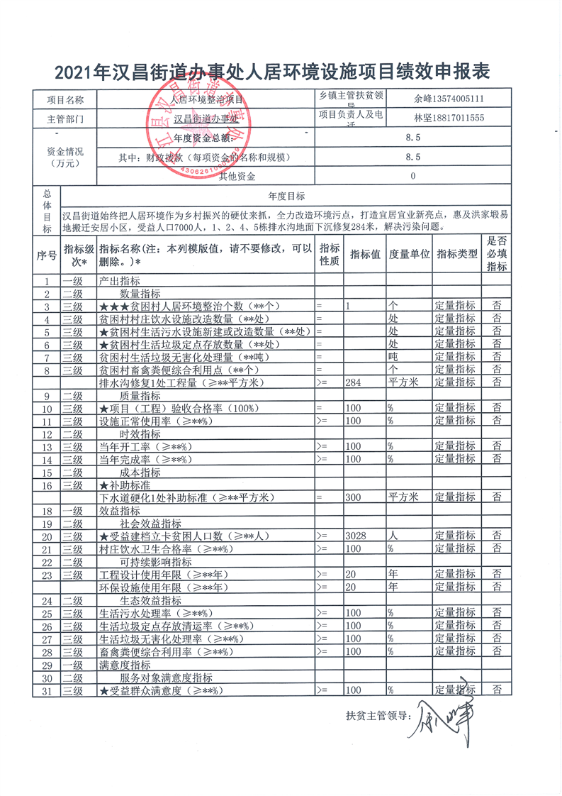 汉昌街道2021年统筹整合涉农资金项目库绩效申报表