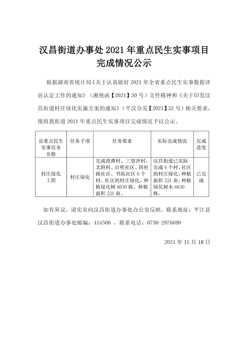 汉昌街道办事处2021年重点民生实事项目完成情况公示