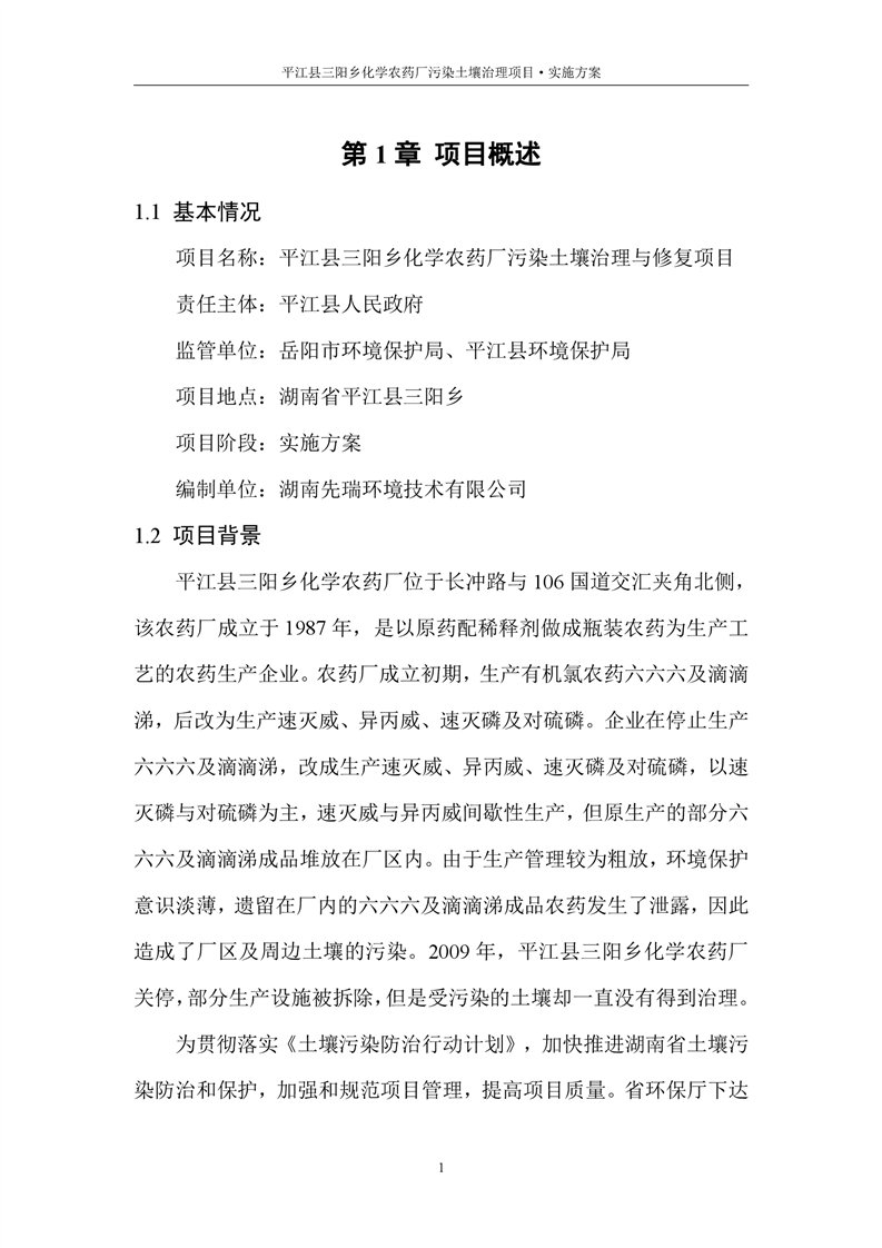 平江县三阳乡化学农药厂污染土壤治理项目实施方案公示
