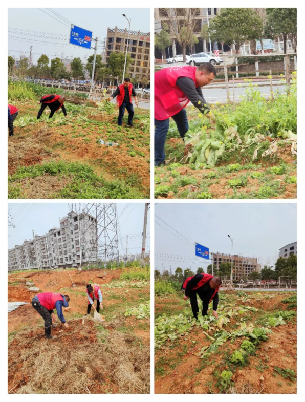 天岳新村十一亩村级生产发展用地,闲置期间被周边村民种上了农作物,极大影响了天岳村的村容村貌,县文明创建办多次要求整改,经村上多次与村民做工作,并于二月十日出具通告,限期于二月二十八日之前腾地,三月二日,仍有一些村民的农作物未来得及收割,为了让他们的损失降到最低限度,志愿者们一起动手帮助收割。