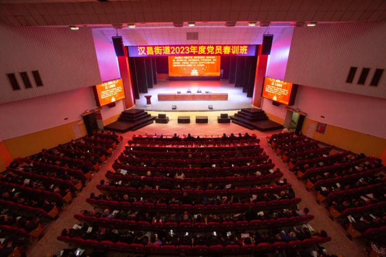 党员春训是党员干部思想武装的"加油站"和实干担当的"练兵场",对提升党员干部内在素养和外在能力发挥着重要作用。3月29日上午,汉昌街道党工委在县人民影剧院举办2023年党员春季集中培训班。机关一、二、三支部全体党员,社区(村)党员代表,街道直属部门负责人,机关离退休支部党员代表,"两新"组织党员代表等共计1000余人参会。