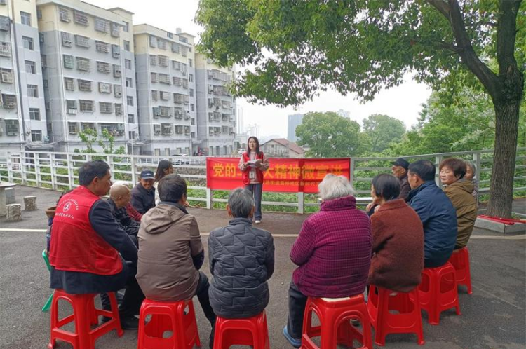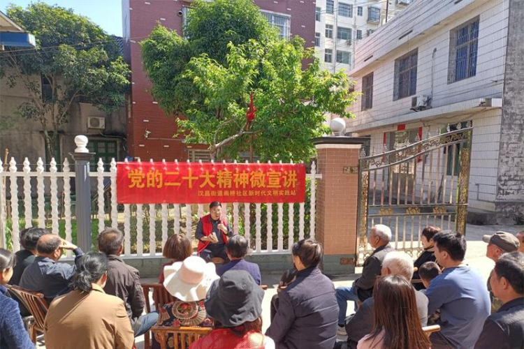 4月25日下午,平江县汉昌街道画桥社区全体工作人员和党员志愿者兵分三路,分别走进小区、走进楼栋、走进屋场,深入开展党的二十大精神微宣讲活动。