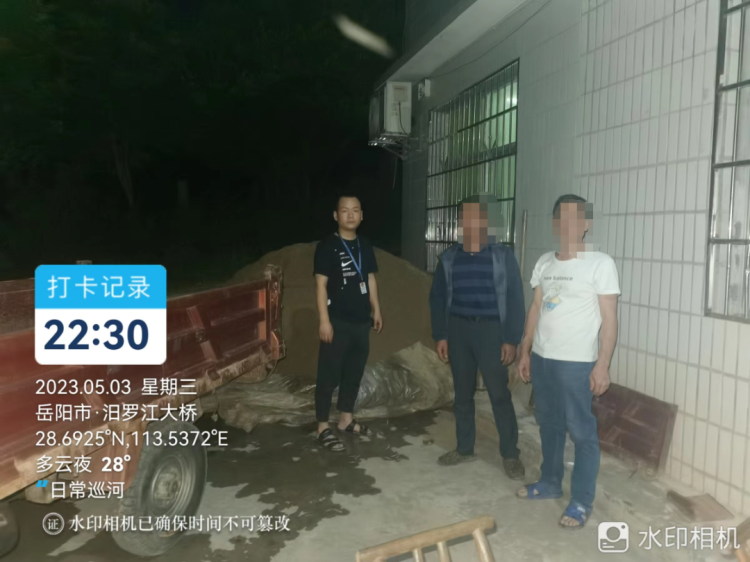 经过摸排走访,工作人员在施某兄弟家中发现未及时处理的河砂10余方,在距离不远的江边发现一处30余方沙坑。据施某兄弟交代,因房屋修缮需要,加之法律意识淡薄,不惜破坏河道环境,利用夜色掩护,在汨罗江边偷采河砂。