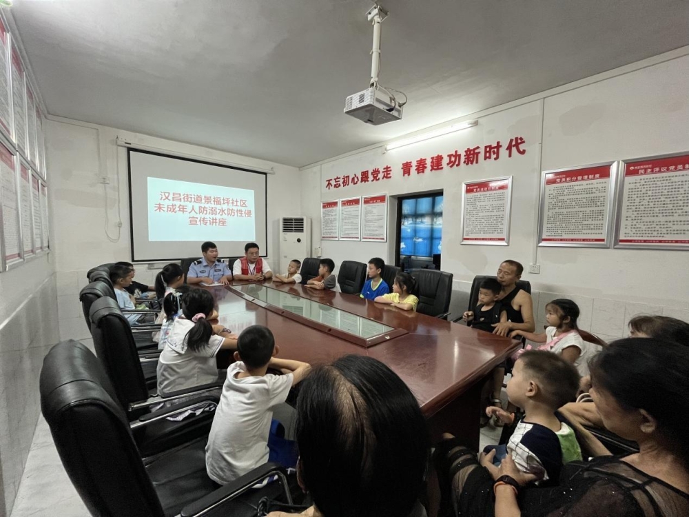 为进一步推进暑期少年儿童关爱服务活动,提升广大家长和未成年人的法律意识和安全防护意识,营造有利于未成年人健康成长的家庭、社会环境,8月18日,汉昌街道景福坪社区开展“守护花季 护航青春”青少年防溺水防性侵主题教育讲座,辖区内共有30多名中小学生及家长参与。