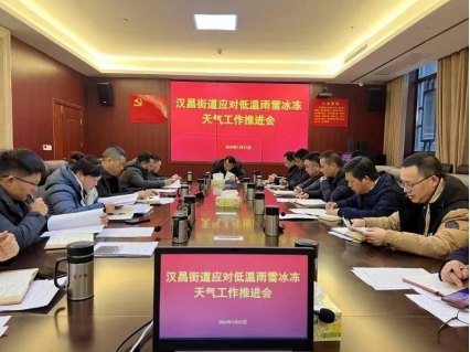为有效应对寒潮雨雪天气预警信息,1月21日晚,汉昌街道党工委召开应对低温雨雪冰冻天气工作推进会,统筹部署寒潮雨雪冰冻极端天气及防范应对工作。