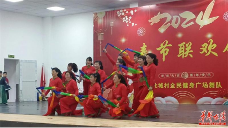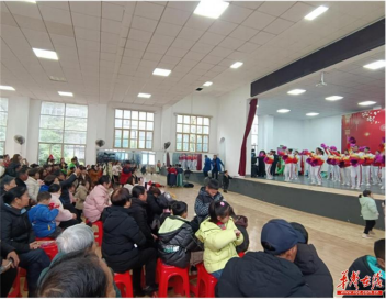 “欢快的舞蹈跳起来,幽默的相声讲起来,优美的歌曲唱起来……”1月31日下午,在平江县汉昌街道北城村原电器厂礼堂内,一场由村民自导自演的春节联欢会正在火热上演。此次演出以“美好生活、全民健身”为主题,是该村广场舞队成立后首次举行的大型联欢会。22个节目轮番上演,吸引了全村500多名村民前来观看。现场掌声雷动,热闹非凡,呈现出一派祥和欢乐的节日氛围。