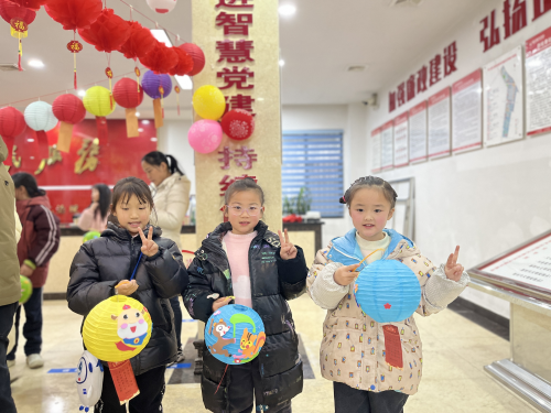 现场,五彩斑斓的灯笼和灯谜成为了最亮眼的风景。40余名儿童在家长的陪伴下,纷纷动手制作灯笼。孩子们灵巧的手指穿梭在彩纸、竹篾之间,一边交流着扎灯笼的心得,一边相互学习着技巧。不一会儿,一个个造型各异、色彩斑斓的灯笼便在他们手中诞生。