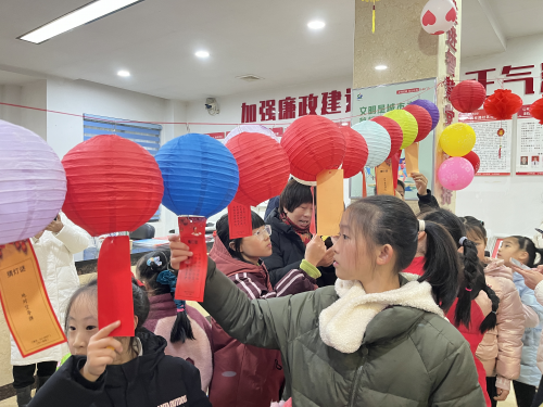 猜灯迷环节更是将活动推向了高潮。孩子们围聚在灯谜前,或低头沉思,或交流讨论,努力发挥才智寻找谜底,家长们也与孩子们一起分享着猜谜的乐趣,现场欢声笑语不断,元宵节氛围渐浓。