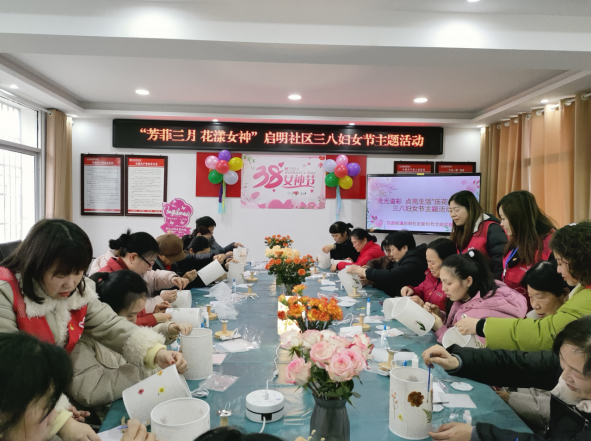为进一步凝聚女性力量,丰富辖区妇女的精神文化生活,提升妇女群众生活的幸福感、获得感,展现新时代女性的巾帼风采。在第114个“三八”国际妇女节来临之际,汉昌街道启明社区组织开展了“芳菲三月,花漾女神”妇女节主题系列活动,向身边的每一位“她”致以节日的美好祝福。