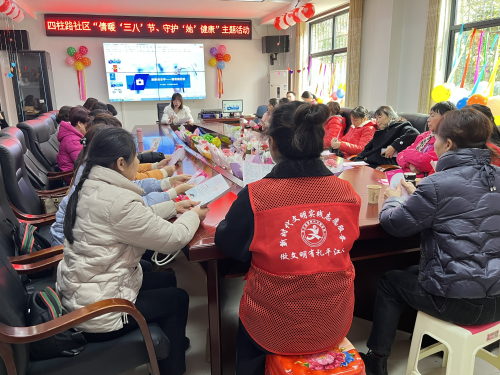 人间最美三月天,守护健康绽芳华。值“三八”国际妇女节来临之际,为关爱社区女性同胞健康,3月7日下午,汉昌街道四柱路社区新时代文明实践站组织妇女居民、组长代表等30余名妇女居民,开展以“情暖‘三八’节、守护‘她’健康”为主题的健康公益服务活动,以此提高辖区妇女的自我保健意识和健康水平。