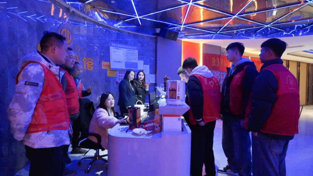 应急先锋志愿服务队、红袖章义务巡逻志愿服务队联合街道平安办,到中心城区的KTV、网吧、酒店、台球室等重点场所开展"平安夜巡"活动,查阅经营场所相关登记资料,通过"边巡边宣"的方式,加大扫黑除恶、利剑护蕾、平安创建政策的宣传力度和覆盖广度。