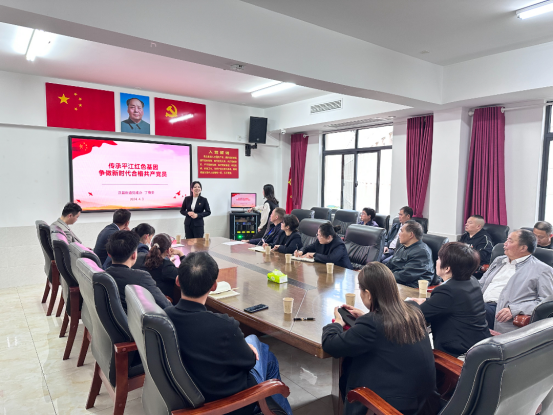 在会议室,书院社区联点组长丁薇姿以“传承平江红色基因,争做新时代合格共产党员”为主题,给大家上了一堂生动的微党课。党员们重温平江革命历史,从平江起义的光辉历程中赓续红色血脉、继承先烈遗志,永葆共产党员的初心和本色,思想受到了“红色洗礼”,心灵得以涤荡。