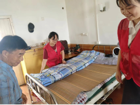 在敬老院,党员发展对象们帮助老人们换水、叠被子,还陪老人聊天,问候老人们的生活情况,倾听他们的心声,并自费给老人们送上了80份爱心物资。一声声亲切的话语,一个个善意的笑容,让老人们心头暖意十足。