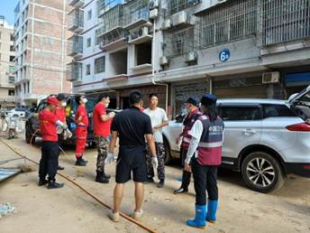 四柱路社区共有二十多个小区受灾,县疾控中心安排2支志愿者队伍在这里连续工作2天,在7月4日已完成所有消杀工作,公共环境基本恢复。