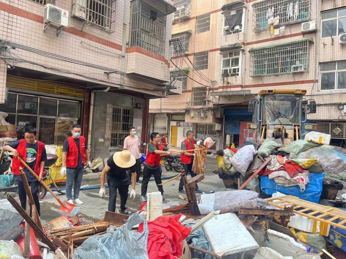 ▲7月6日下午,寺前社区干部在月池塘社区背街小巷进行卫生清理。