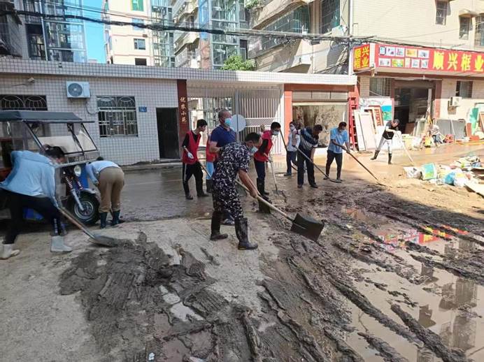 ▲7月6日,民建路社区在县纪委、医保局、平江县人民医院、发电公司、福寿山志愿者、武警官兵、街道社会保障线、及兄弟单位(枫树村、众欣筹备工作组)的支援下,继续对东街、财富花园、财富巷、怀甫路沿线继续开展街面清淤及垃圾杂物清理。