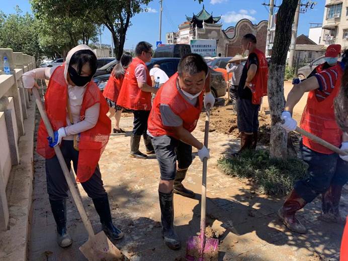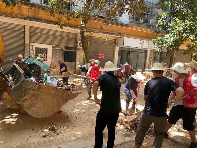 一场百年不遇的洪水让汉昌街道留下了遍地狼藉,32个社区村遭受了不同程度的灾情。在这最关键、最紧要的时刻,从县直机关、街道、乡镇、村(社区)的党员干部,到普通群众、志愿者们,大家振奋精神,万众一心,以时不我待的紧迫感、舍我其谁的使命感,积极投身到灾后重建与恢复生产的行动中:街道淤泥堵塞,我们合力清扫;社区垃圾成堆,我们手铲车运;用水用电困难,我们加班抢修;出行道路受阻,我们连夜疏通......坚决打赢灾后重建幸福家园的“保卫战”。