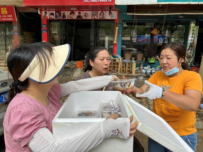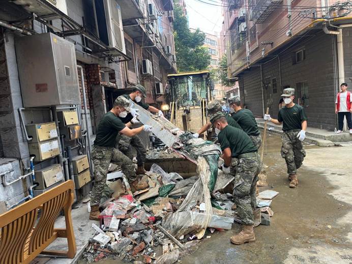 ▲板江乡组织45名党员干部奔赴受灾一线,支援汉昌街道多个受灾点位。