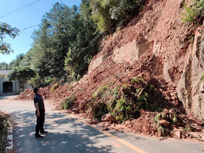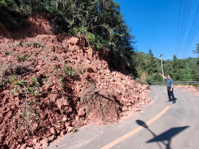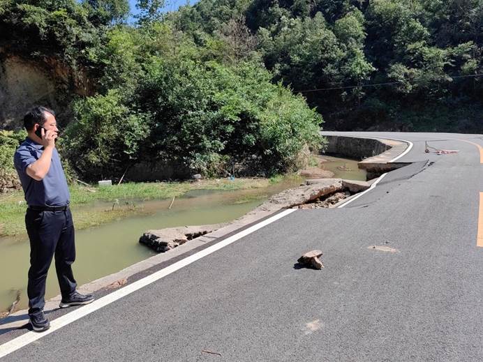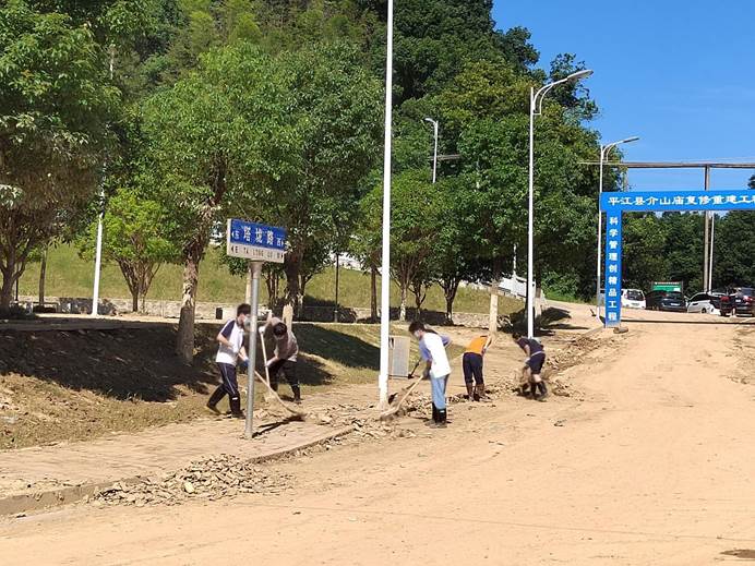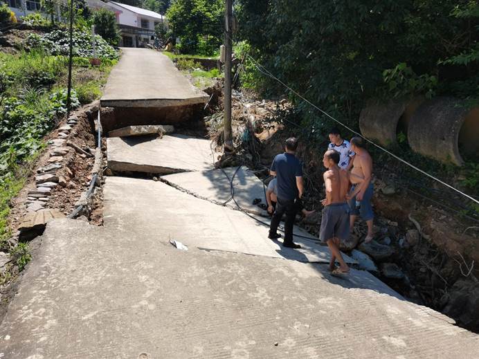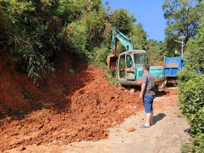 ▲澄潭村党支部书记带队抢修村部受损道路。