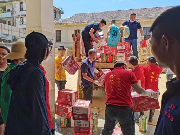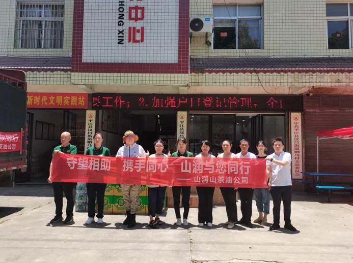 ▲县妇联携手山润山茶油公司到汉昌街道驷马村开展慰问行动,捐赠山润油200瓶,米200袋、水50件,价值5万余元,并到受灾群众家里走访慰问。