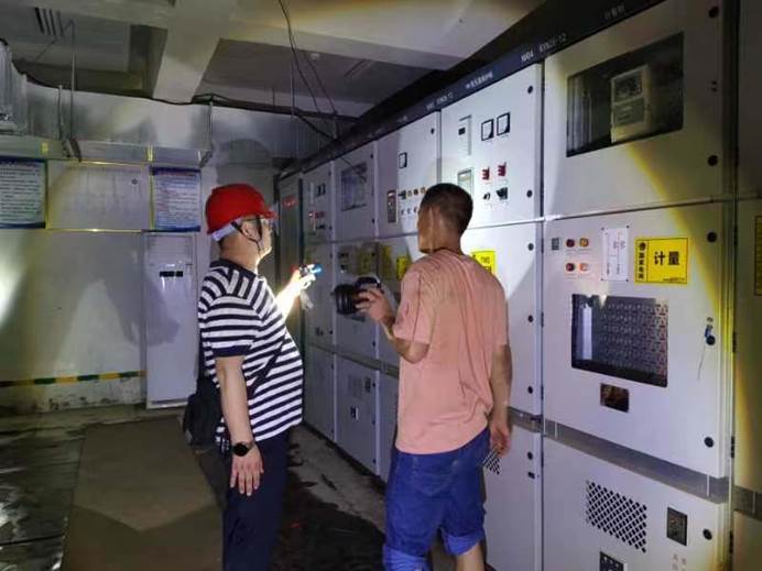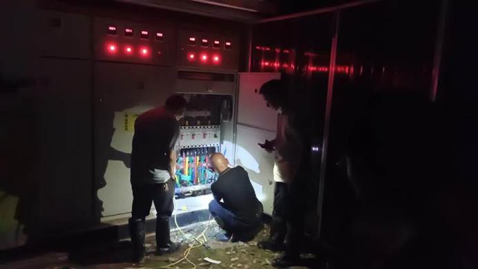 ▲寺前社区抢修鲁肃山小区电路,现已全部恢复供水供电。