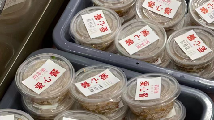 ▲启明社区将胖子香捐赠的40份爱心餐全部发放到西街沿线店铺。
