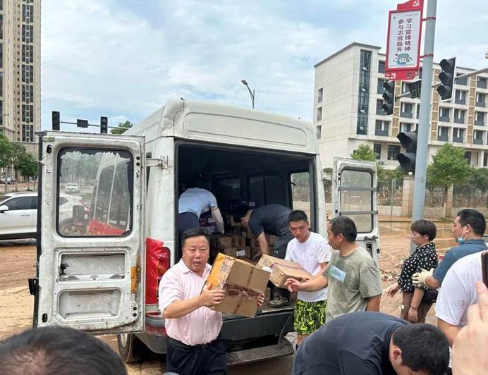 ▲李振东老板等爱心人士对口对北源村、童家岭社区、迎瑞村进行物资捐赠。