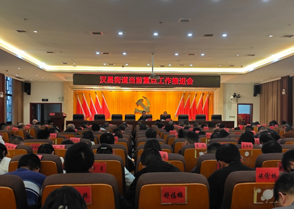 11月18日下午,汉昌街道在机关六楼召开当前重点工作部署暨创文工作推进会,全体负责干部、全体机关干部、部门负责人、社区(村)书记和副书记以及创建专干等251人参会,会议由党工委副书记、街道办事处主任彭勇主持。