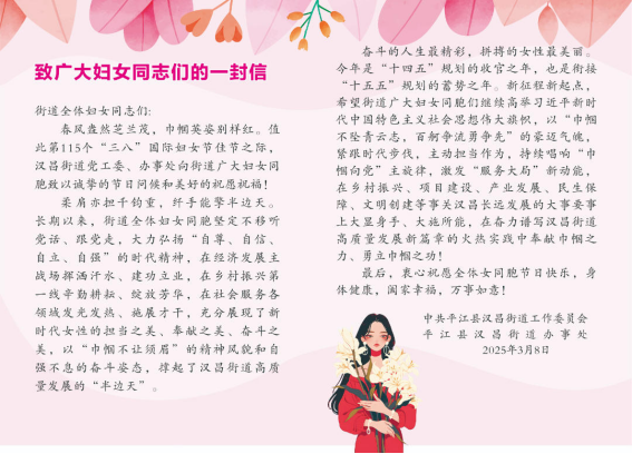 为庆祝第115个“三八”国际妇女节,丰富女性精神文化生活,传递社会对妇女儿童的关爱,展示新时代女性积极向上的精神风貌,近日,汉昌街道辖区内的各社区(村)纷纷开展了丰富多样的妇女节活动。