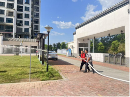 演练环节模拟众欣安居小区2栋高层住宅10楼突发火情,浓烟迅速蔓延,部分 “居民” 被困。物业监控中心第一时间启动应急预案:迅速拉响消防警报、拨打119报警,社区及物业工作人员引导居民用湿毛巾捂住口鼻、沿安全通道低姿撤离,同时接通消防水带灭火。整个演练过程紧张有序,按照演练预案,从接收火情、拉响警报、疏散撤离到扑灭火源,各环节衔接紧密,参演人员分工明确、配合默契,充分检验了社区、物业等多方协同作战能力。活动最后,部分居民还就相关灭火设备进行了实操,及时发现并纠正了对应的实操问题。