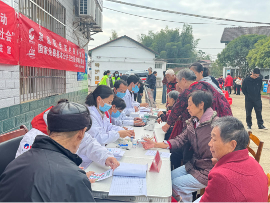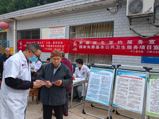 体检义诊区人头攒动,成为老人们节日里最牵挂的“健康驿站”。汉昌三阳卫生院的医护团队有条不紊地忙碌着,血压计、血糖仪依次上阵,医护人员一边记录数据,一边温和叮嘱:“张大爷,您血压有点偏高,重阳聚餐可别贪嘴。”另一边,岳阳市脑心同治专业委员会的专家正为老人分发药丸,针对一位患有高血压的李奶奶,专家耐心讲解:“奶奶,您这情况要多监测血压,我们给您带了对症的药,祝您节日安康,身体硬朗。”现场还设置了健康宣讲角,志愿者用通俗的方言讲解日常保健知识,老人们听得认真,不时点头回应,热闹又温馨的氛围让这个重阳节格外有温度、有意义。