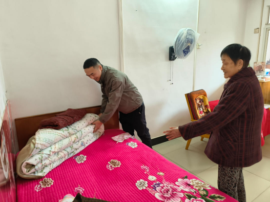 本次活动聚焦敬老院老人的生活所需与健康所盼,以贴心服务传递了满满的重阳暖意。街道主要负责人带领工作人员亲手将爱心物资递到老人手中,轻声道上“重阳安康”的祝福。接过沉甸甸的物资,老人们眼角眉梢都漾起了欣慰笑容。机关一支部党员则与平城社会服务中心社工组建起志愿服务队,分头走进老人宿舍开展内务整理。有的细心叠好被褥,有的弯腰清理角落杂物,指尖的温度顺着一件件小事,传递着最真切的敬老之情。宿舍外的临时理发点前也排起了小队,理发师带着专业工具耐心服务,一边询问老人的发型偏好,一边细心修剪头发。刚理完发的刘爷爷对着镜子端详道:“师傅手艺真好,这是我最喜欢的重阳礼物!”