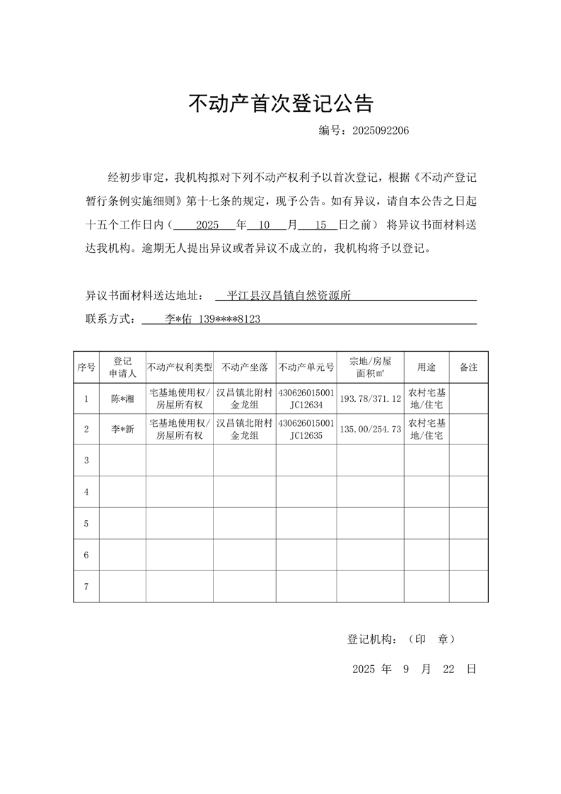 不动产首次登记(陈*湘等)