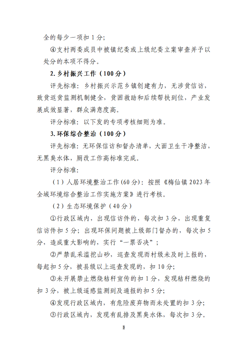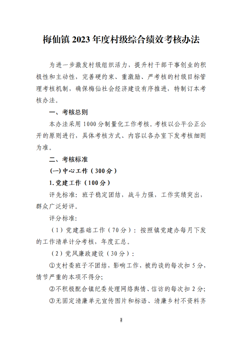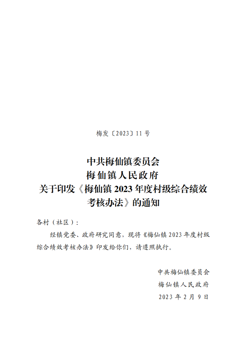 梅仙镇2023年度村级综合绩效考核办法