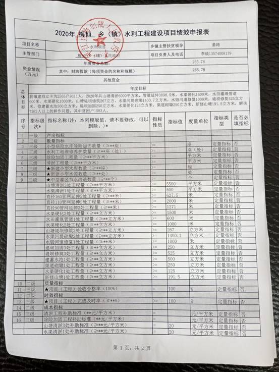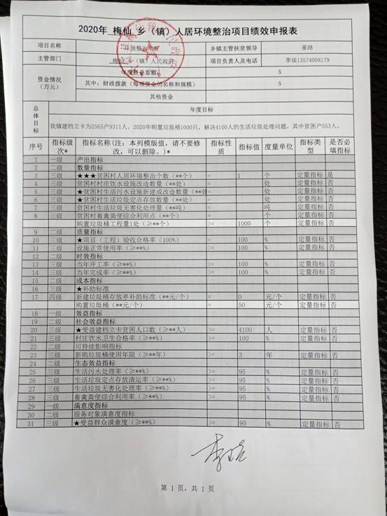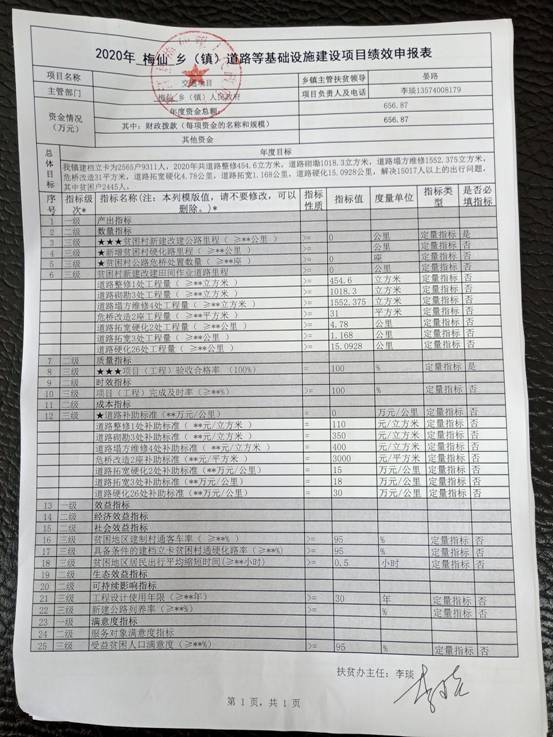 梅仙镇2020年统筹整合涉农资金项目库预算绩效申报(调整)