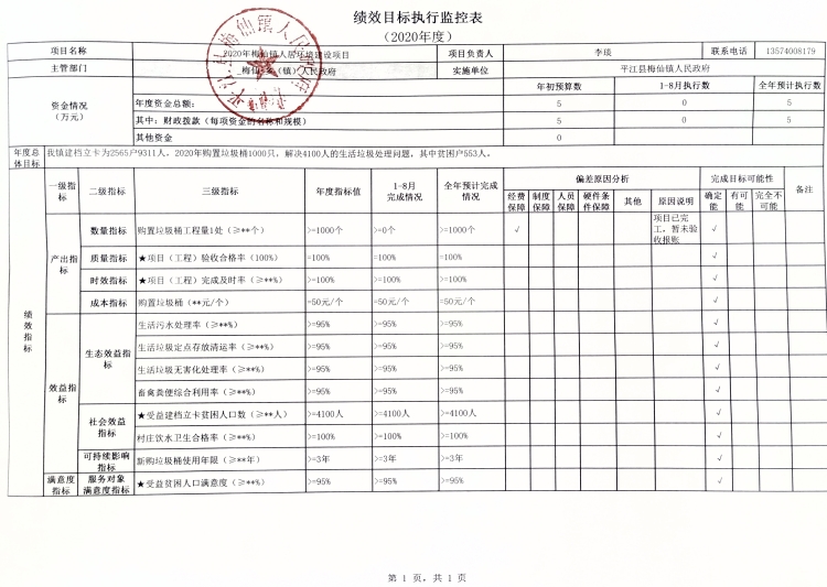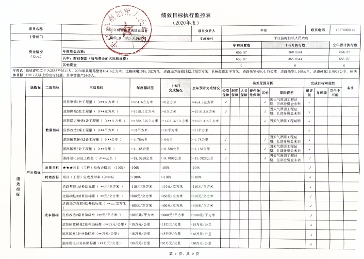 梅仙镇2020年统筹整合涉农资金项目库预算绩效监控