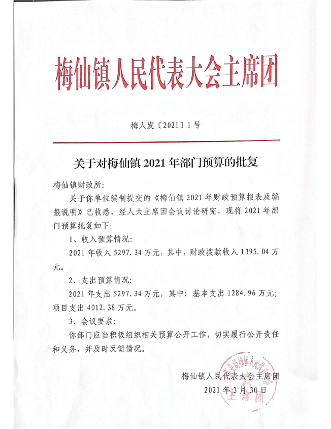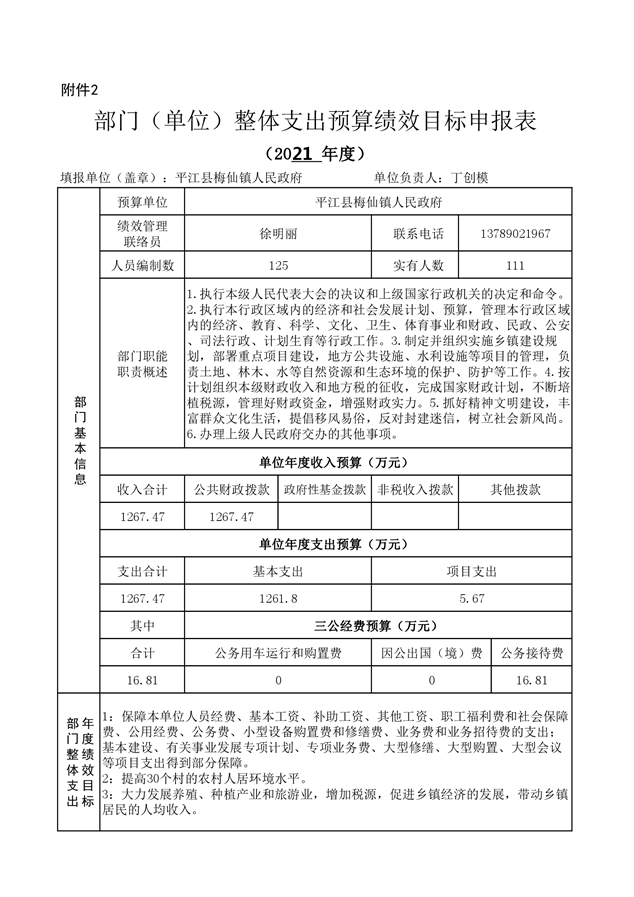 平江县梅仙镇2021年度部门预算及预算目标绩效编制公示