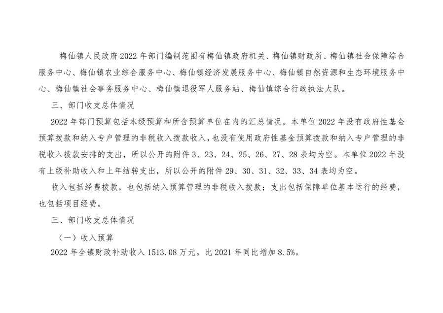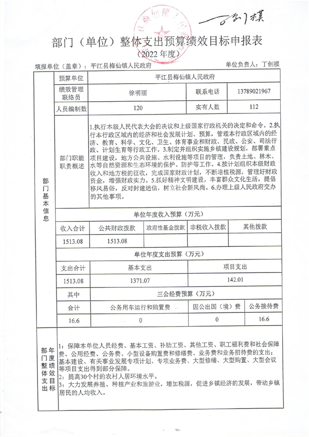 平江县梅仙镇2022年度部门预算及预算目标绩效编制公示