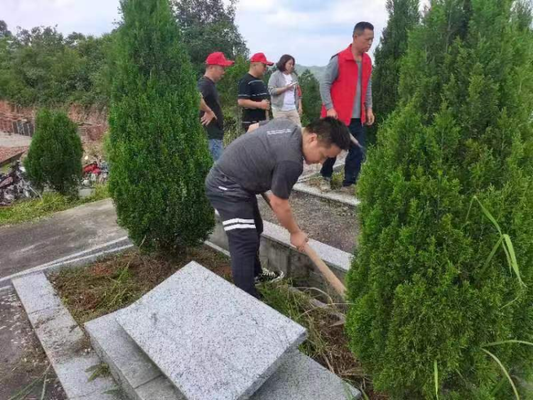 深化殡葬改革,守护国之大者。为了全面贯彻镇党委有关会议精神,落实活人墓豪华墓专项整治工作要求,5月23日,新霞村党支部聚焦“去陋习、树新风”,开展“四亮”创建主题党员日活动。一方面发动党员参与村级活人墓、豪华墓走访排查,呼吁党员以身作则,从自身做起,带头去除丧葬陋习,宣扬厚养薄葬理念,带领身边群众积极参与违建墓地专项整治行动。另一方面,组织党员志愿者到公益性公墓山参与“清杂”活动。通过对墓区范围内的杂草、野树进行清理,不仅能美化公墓山环境,消除安全隐患,还能保障祭祀者的安全出行,为该村深化殡葬改革,倡导移风易俗奠定了良好基础。