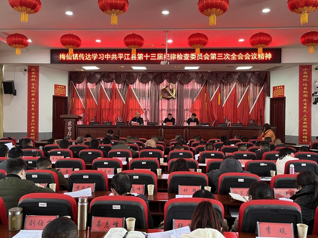 为落实县纪委第三次全体会议精神,梅仙镇召开党员大会,全体机关干部、各村(社区)支村两委成员、镇直部门负责人参加会议。