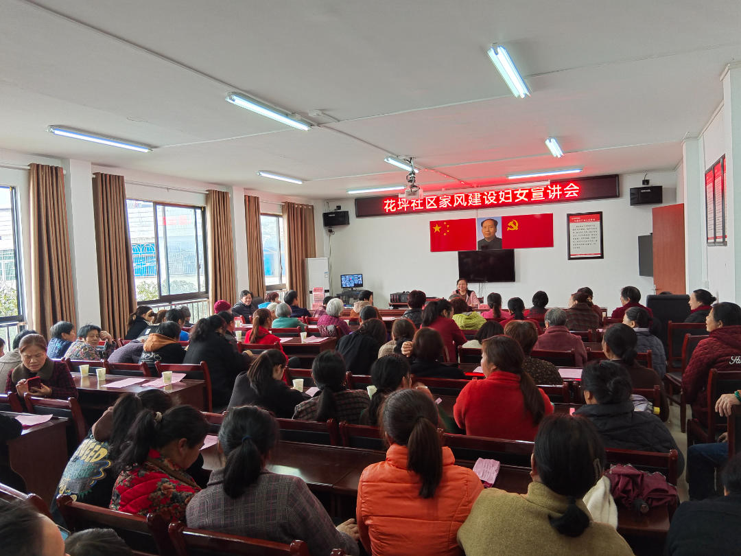 家风促文明,巾帼显担当。以优良家风促进文明乡风,梅仙镇历来注重家风建设,努力发挥妇女在家庭中的重要作用。3月8日,在花坪社区便民服务中心,一场别开生面的家风宣讲会正在火热进行,该村支委委员、妇联主席钟云芳结合本村最新通过的村规民约内容,向参会的妇女们介绍村规民约的重要意义,号召广大妇女以身作则,建设好家庭,传承好家教,弘扬好家风,引导所属家庭遵守村规民约,为建设文明花坪、文明梅仙贡献自身力量。
