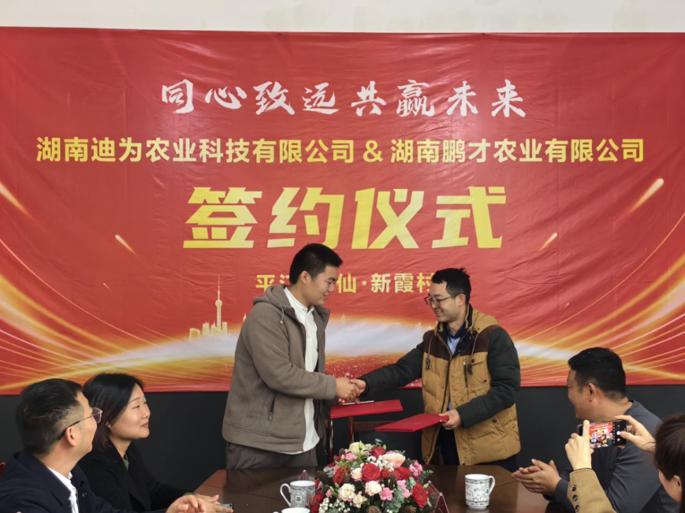 湖南迪为农业科技有限公司是菌类农产品种植方面的龙头企业,产业覆盖全省,辐射贵州、云南等8个省,获评了2023年“长沙市巾帼现代农业科技示范基地”。鹏才公司此次将种植基地定于新霞村,该村处于全县乡村振兴示范片区,莲藕、马蹄、菌类等农产品种植优势得天独厚。两家公司共同签署了《农业公司和种植基地合作协议》,由迪为公司负责提供优质菌种、技术指导和兜底销售,鹏才公司负责场地和经营,在新霞村100亩的种植基地上大力开展羊肚菌、松茸菌等菌类种植。两家企业强强联手,种植项目必将取得圆满成功。