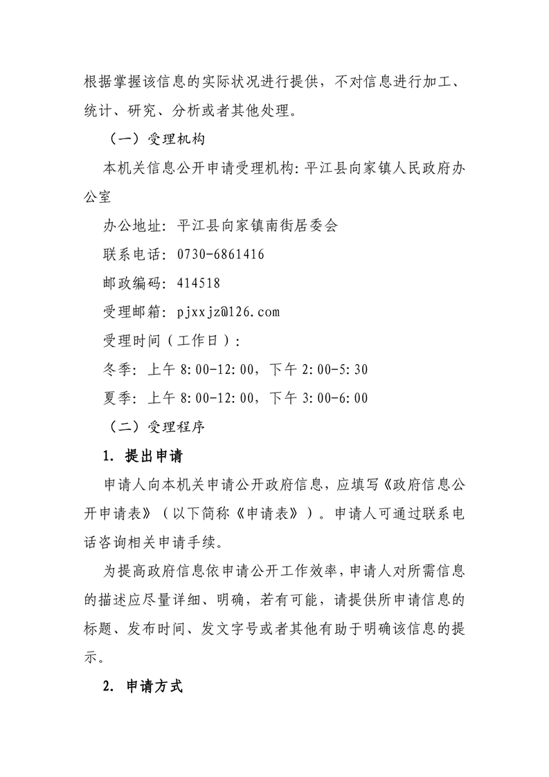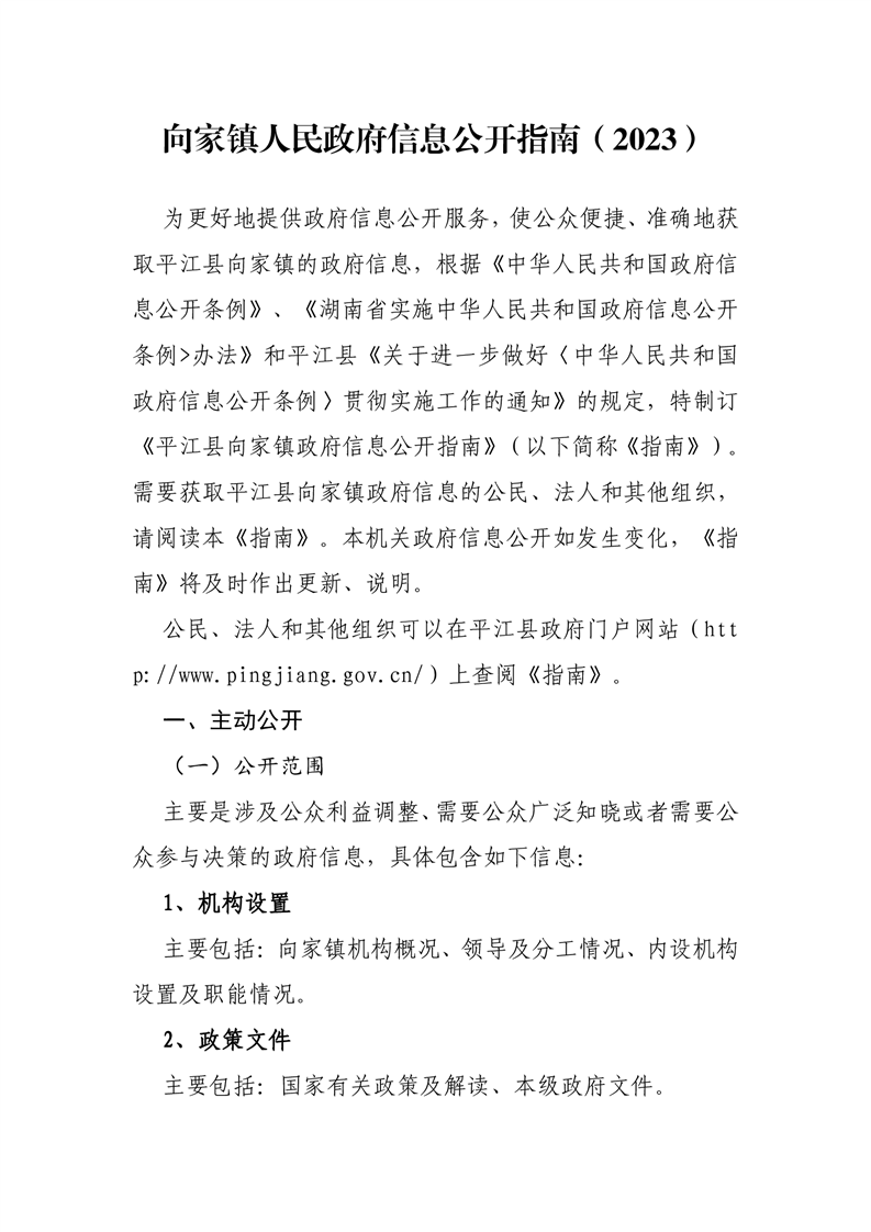 平江县向家镇人民政府信息公开指南(2023)