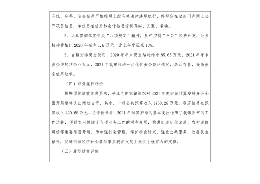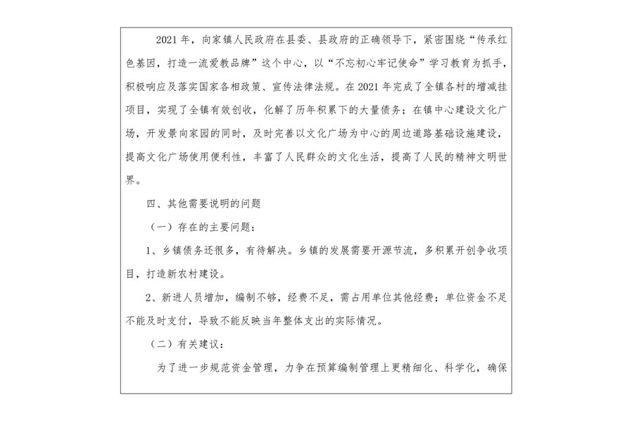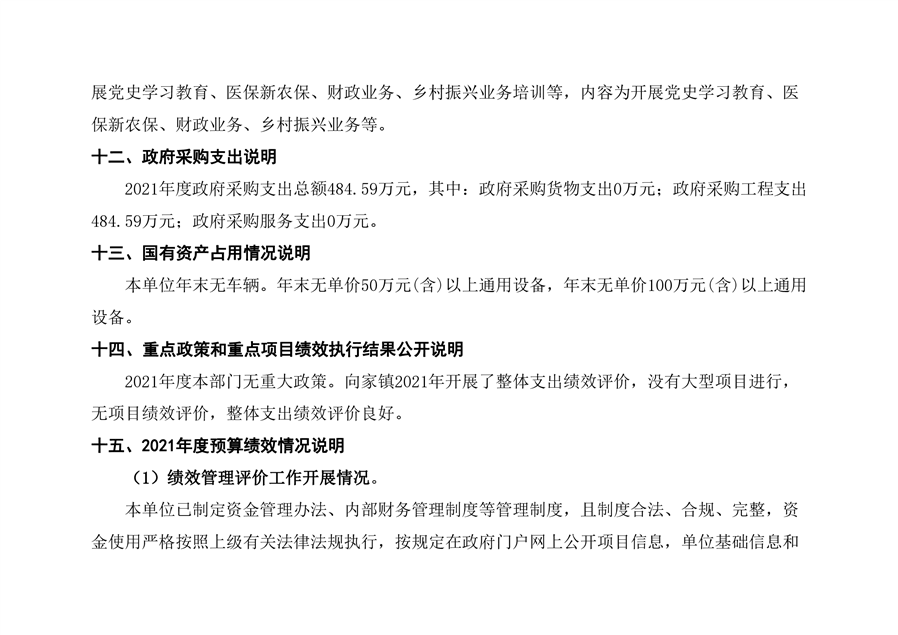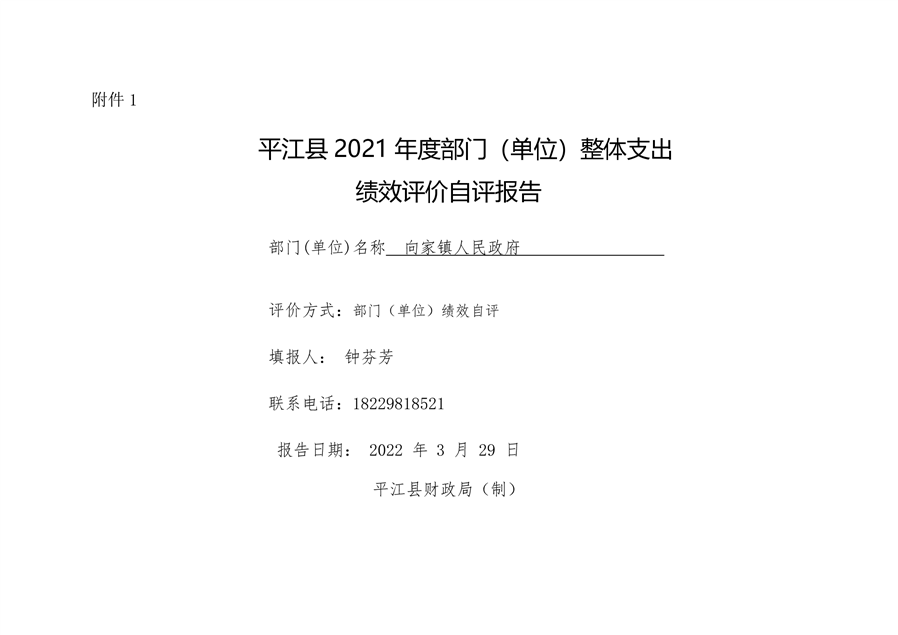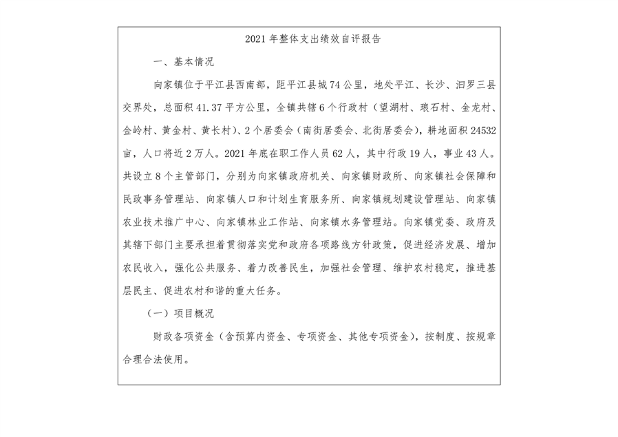 2021年度向家镇人民政府部门决算公开及部门整体支出绩效评价自评报告